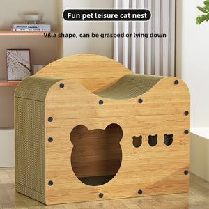 Dayanıklı ahşap dikey kanepe oluklu kağıt kedi evi entegre tırmalama kurulu pençe bileme oyuncak kedi ağaçları karton
